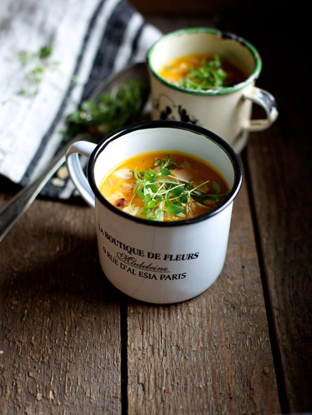 Jeg er tilbøjelig til at sige, at efteråret er min yndlings-årstid. Naturen er så smuk og lyset er fantastisk, i hvert fald på de dage, hvor solen gider titte frem. Men med efterår følger også nogle knap så rare ting, bl.a forkølelse, influenza og træthed – især det sidste er jeg for tiden ramt ret hårdt af. Egentlig har jeg allermest lyst til at være indenfor, gå i hi, slappe af, og selvfølgelig lave mad. Forleden lavede jeg denne græskarsuppe, som jeg er ret så vild med, og som jeg også lavede sidste år ved denne tid.