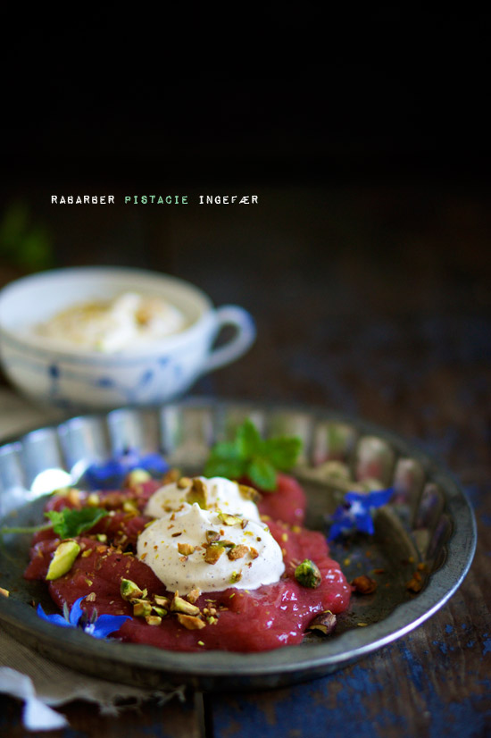 Det lyder virkelig lækkert med ingefær i rabarbergrød!! Og med ristede pistacienødder til også :) mmm!