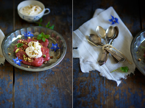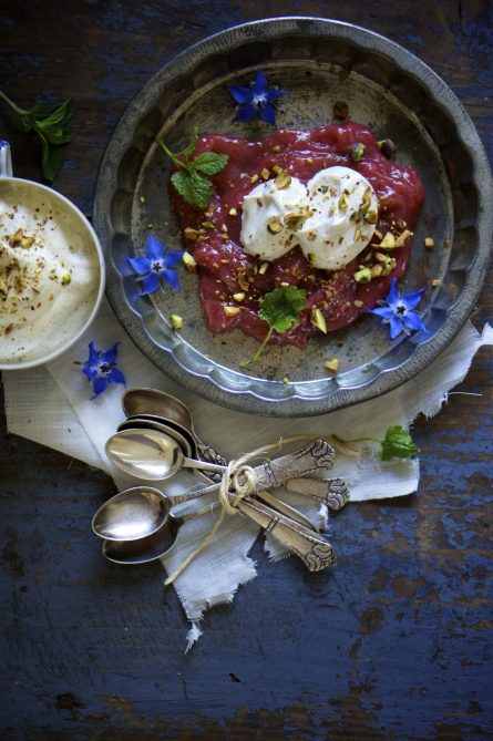 Mmm, intet bedre end smuk mad. Man får bare mere lyst til at spise det! Min mave knurrer i hvert fald lystigt. Elsker kombinationen af rabarber og pistacienødder, fik en tærte fra Summerbird med den kombination og den har ligget i baghovedet lige siden, som noget, der skal prøves herhjemme.