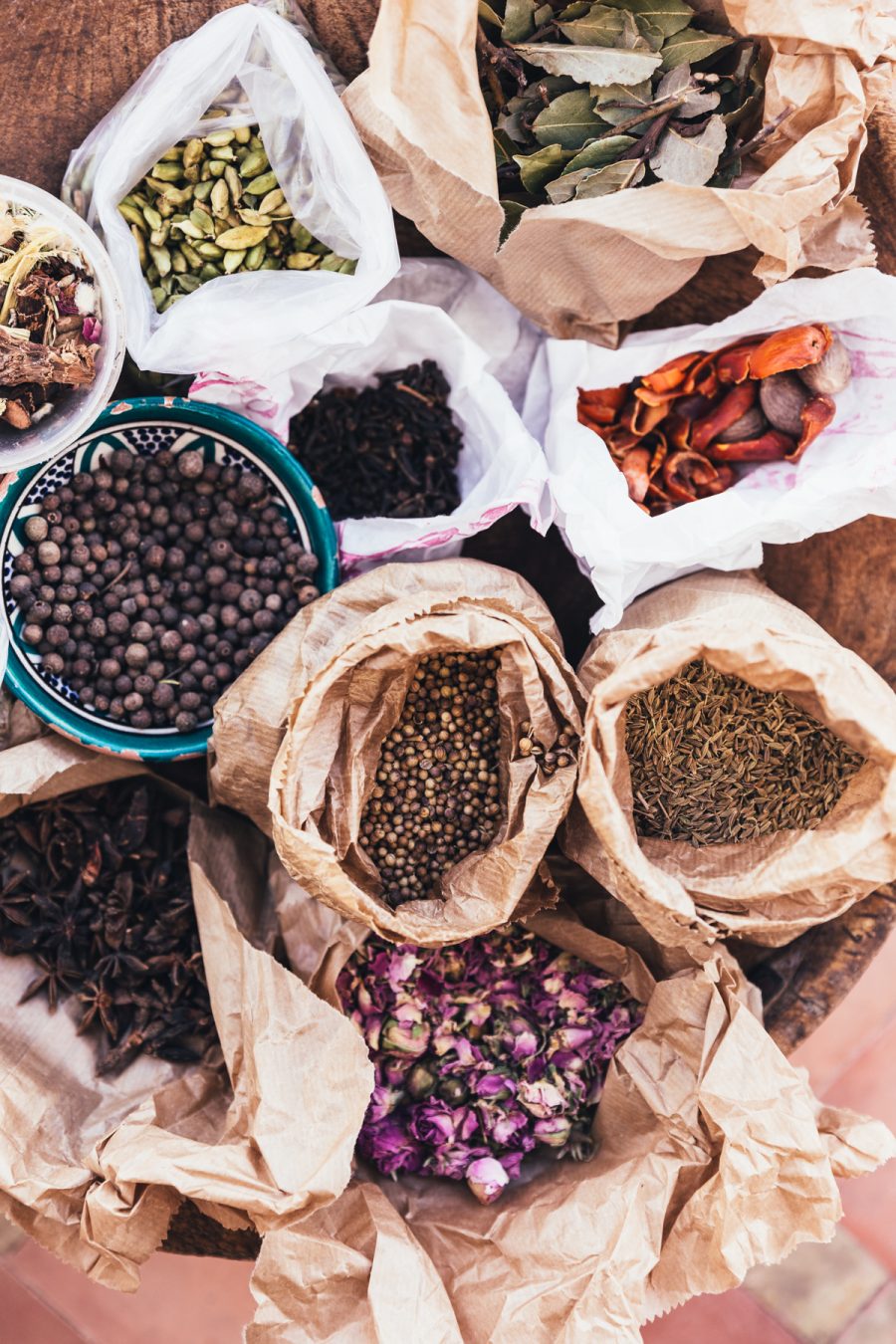 – Anne fortæller om krydderier generelt og hvordan de bruges i det marokkanske køkken. Vi blander vores egen variant af den berømte Ras el Hanout.